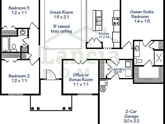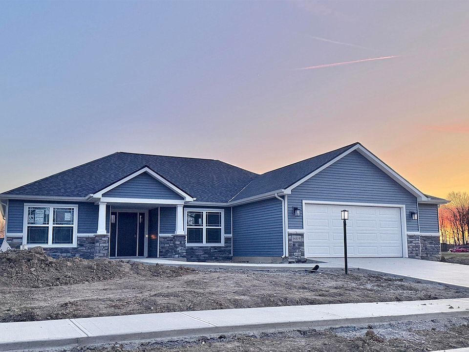 December promo, $5000 towards closing costs and prepaids! SWAC. POND LOT! Lancia’s Mandalay is a split ranch with 1,666 sq.ft, 3 Bedrooms, 2 Baths and 2-Car Garage with 6' extension. Great Room with ceiling fan, ceramic face gas fireplace, with outlet above, has 9' raised tray ceiling. Separate Office or Bonus Room off Foyer. Kitchen faces 12 x 10 Patio off Nook and Great Room. Kitchen has island with breakfast bar, Quartz countertops, ceramic backsplash, double door Pantry, stainless steel smooth-top stove, dishwasher, microwave, soft close drawers, additional gas line hook-up behind stove are standard. Allowance for fridge, washer and dryer which will be installed at closing. Dual door closet in Laundry Room off of Garage. Owner Suite Bedroom has ceiling fan, dual rod & shelf 1-wall unit in the walk-in closet., dual sink vanity, 5' Shower with swing glass door in Owner Suite Bathroom. Vinyl plank flooring in Kitchen, Nook, Foyer, Baths and Laundry Room. Home has Simplx Smart Home Technology - Control panel, up to 4 door sensors, motion, LED bulbs throughout, USB port built-in charger in places. Garage is finished with drywall, paint, attic access with pull-down stairs and has one 240-volt outlet pre-wired for an electric vehicle charging. Exterior has stone on elevation. (Grading and seeding completed after closing per Lancia’s lawn schedule.) 2-year foundation to roof guarantee and a Lancia in-house Service Dept.