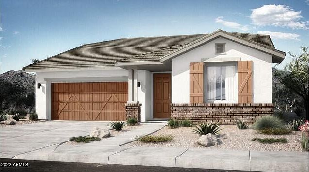 MLS#6433994 Ready Summer 2023! Spacious open great room plan features four bedrooms and two bathrooms. The owners suite is tucked away in the back of the home for privacy, while the secondary beds are at the front of the home. At the heart of the home you will find the spacious kitchen, dining, and gathering room. Nestled in beautiful Surprise, just minutes from shopping, dining and all the fun things! Design options include: gas stainless steel appliances - 12x24 concrete look tile - Upgraded herringbone backsplash - super shower. Structural options include: garage service door - alt AC location