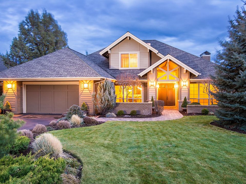 This beautiful luxury home has outstanding details throughout and is located on the 17th hole with all the amenities Eagle Crest has to offer. A great main floor living design that includes a huge master suite with views, tiled soaking tub and huge walk-in closet. Cathedral ceilings with floor to top windows to bring in all the natural light and views, bricked fireplace with built-in mantel & entertainment center, a gourmet kitchen with breakfast bar and nook, large den and utility room with sink.