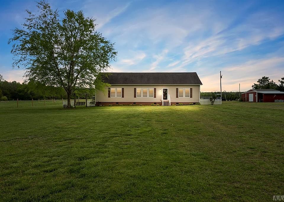 Spacious ranch on 10 acres, completely horse-ready! Convenient location for all base commuters. 3 Bedrooms, 2 1/2 Baths, Granite kitchen counters, lrg Master Bedroom w/Master Bath. Enjoy evenings on the huge 24x25 deck while watching the horses play in their lush pastures. Or stroll out to the shooting range to sharpen those skills. Lrg trees outline the spacious property. Each of the 3 fenced pastures has it's own water source-no hauling water! The 2 stall 12x36 barn sits in a smaller paddock. 16x32 shed lends lots of storage for equipment. Washer & dryer convey. Don't miss it!