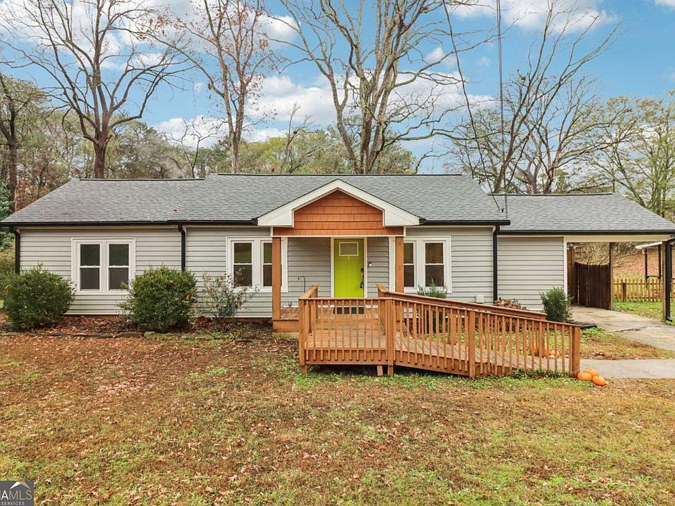Spacious and beautifully updated, this move-in ready home sits on an impressive 0.8-acre lot with mature trees and plenty of room to enjoy the outdoors! Inside, gorgeous, low-maintenance laminate wood floors flow throughout the main living areas and bedrooms. The bright front room is filled with natural light and works perfectly as a dining room with easy access to the kitchen. The updated, modern kitchen features stainless steel appliances-including a double oven-plus abundant cabinet and counter space. The cozy living room offers a built-in display area for your favorite decor or keepsakes. Retreat to the primary suite, complete with a large sitting area ideal for a home office, nursery, or reading nook. The en-suite bath includes a spacious pedestal tub/shower. Two additional bedrooms share an updated hall bath, and a fourth bedroom provides even more versatility. Step outside to a massive backyard designed for relaxation and entertaining. The expansive deck includes both covered and uncovered areas perfect for grilling, dining, or lounging. Enjoy evenings around the fire pit, take advantage of the storage shed, and make the most of the abundant green space. Updates include new paint, fixtures, flooring, kitchen counters, roof, siding, doors, windows, HVAC, tankless water heater, switches, outlets, and plumbing. Conveniently located near shopping, interstates, and downtown Smyrna Market Village. Book your tour today!
