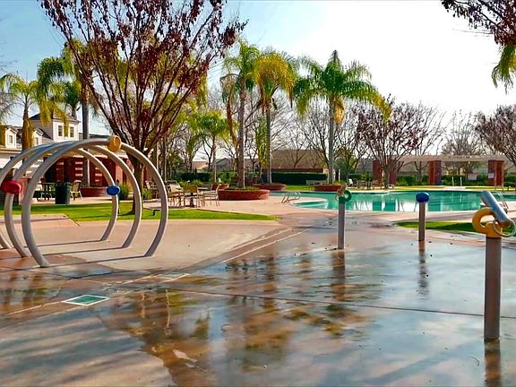 GORGEOUS, move-in ready home loaded with upgrades and located on a corner lot in the desired gated community, Village Green! Just a short walk from the community park, and pool with a water park. This luxurious home features PAID SOLAR, FIVE bedrooms, three full bathrooms, stunning engineered hard wood floors, elegant chandeliers, curtains, and crown molding throughout. The large open layout provides a warm welcoming feel which is great for entertaining guests. The kitchen has a huge center island with lovely pendant lighting, granite countertops and matching granite backsplash. Plus a beautiful low maintenance backyard with artificial grass and large covered patio. This home has been very well-kept and is turn-key! The community provides gated entry, parks throughout the community, and a resort style private pool with a water park.