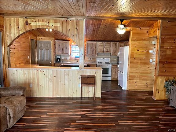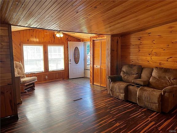 Impeccably maintained ranch home!! 2-3 bedroom home with 2 full bathrooms, a huge living room with tongue and groove ceiling along with a pellet stove that is solely used for heat.(forced air heat is present) The kitchen has large amount of cupboard space and boasts a custom Amish wood counter and cupboard. The 4 car garage is heated, insulated and has water and a half bath, along with being built to handle excessive snow weight. 12x40 enclosed lean to attached to garage for storage for your toys!!A beautiful in ground pool with a massive amount of decking for entertaining and enjoying the summer!!An extra one car detached garage is a bonus! All of this on 1.65 acres and in the South Jefferson school district makes this home complete! Don't wait!!