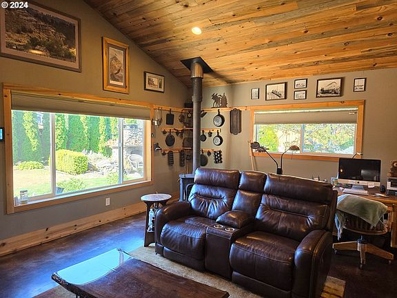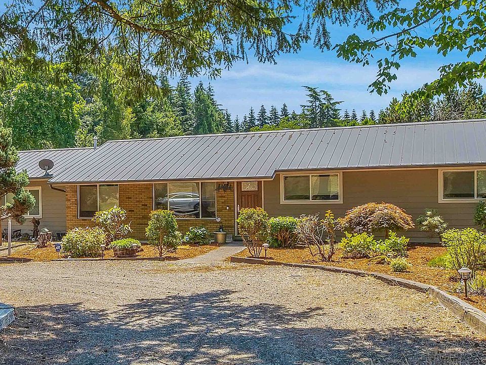 Need some space for your toys? This is perfect for that! 1 level home on over 1/2 acre lot. Added Family Room with vaulted wood ceiling. Large pantry with extra fridge! Garage/shop with power and heat and room upstairs. Metal roof, hardwood, engineered hardwood, LVT, lots of built-ins, plumbed for outdoor gas grill, plenty of garden space & raised beds, Large metal RV cover, a circular front driveway, and an outdoor fireplace!