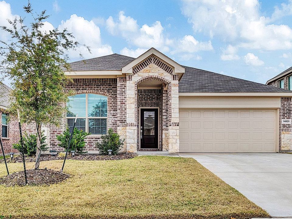 Welcome to your new energy-efficient home, thoughtfully designed for modern living! This charming 3-bedroom, 2-bathroom home features a bright and airy open floor plan with an abundance of natural light, perfect for creating a warm and inviting atmosphere. The spacious living room flows seamlessly into the large kitchen, complete with a generous island, custom cabinetry with ample countertops & storage, and stainless steel appliances—a dream for cooking and entertaining! Retreat to the primary bedroom with an en-suite bathroom and a walk-in closet for ample storage. Two additional, split bedrooms offer ample space for family and guests. Situated on a beautifully landscaped lot with a sprinkler system and a great backyard, this home is perfect for gatherings and family time. Located in a vibrant new community, you'll enjoy incredible amenities such as three pools, parks, walking trails, a clubhouse, basketball courts, soccer fields, and even an outdoor hockey rink. Conveniently close to shopping and zoned to Northwest ISD, one of the area's top school districts, this home truly has it all. Don't miss this opportunity to live in style and comfort!