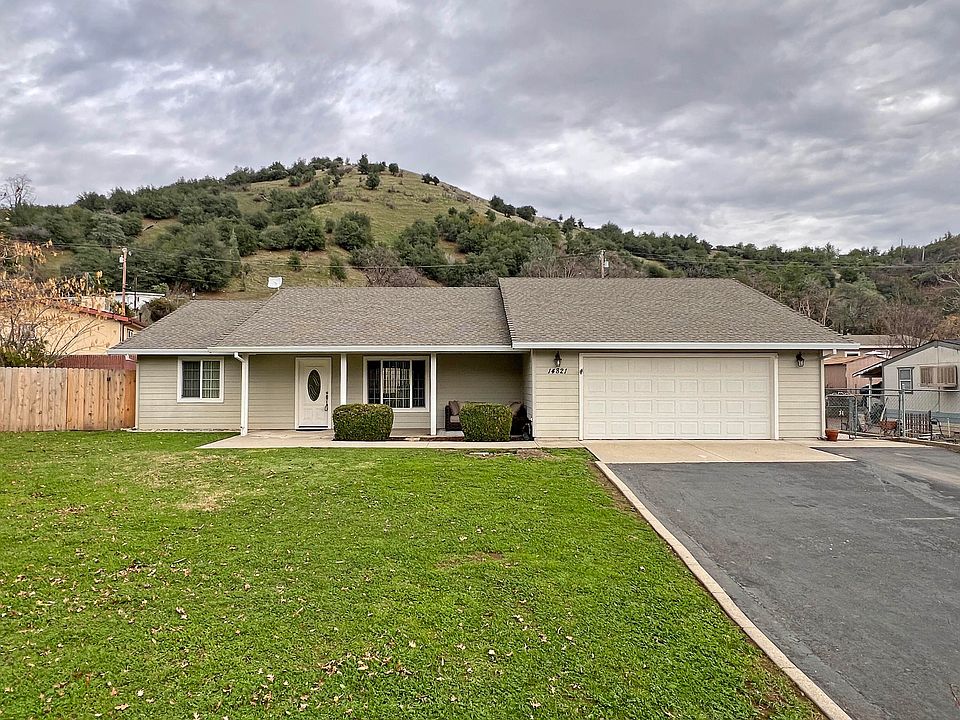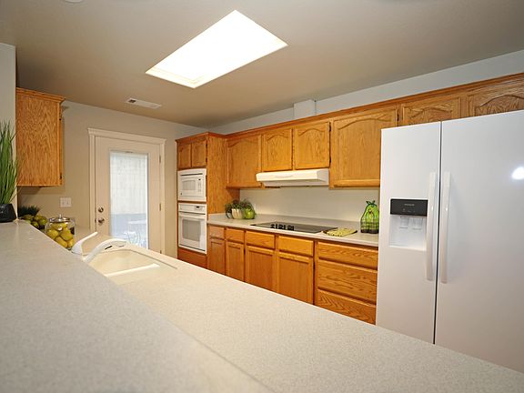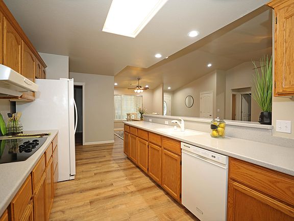 Bright & open floor plan with vaulted ceilings in the living room. Newer interior paint colors give the home a modern feel. Solid surface kitchen counter tops. Quality cabinetry. Master bedroom suite with sliding glass door to covered back patio. Newer carpet. Functional split bedroom floorplan. Large finished 2-car garage. Great curb appeal!! Turn key! Must see!!