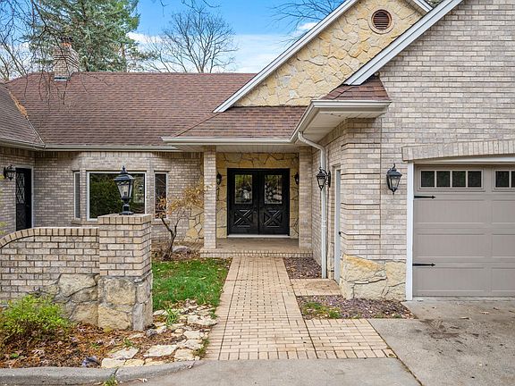 This beautiful Brick home, boasting five bedrooms, five bathrooms, and a six-car garage, is certainly a must-see. Expansive single-story residence featuring three main-level bedrooms, including a primary suite, two fireplaces, stunning vaulted ceilings, a spacious kitchen with a center island, a formal dining room, and a wet bar for hosting your holiday gatherings. The lower level boasts a four-car (tandem) garage, a mother-in-law suite with a kitchen, two bedrooms, a 3/4 bath, a wood-burning fireplace, and laundry hookups. Abundant storage space.