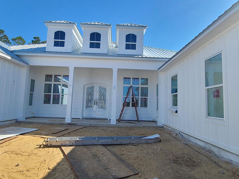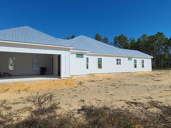 HAPPY HOLIDAYS and Welcome to the spectacular sandhills of North Bay county! Come visit this exquisite 3 bedroom 3 1/2 bath home located on a large 1.14 acre corner parcel across from the pristine spring-fed Bream Pond. This masterful custom home is currently under construction and estimated to be completed by the end of December. Sheetrock, painting, tile work, and flooring are complete. Recently installed is the captivating oversized French front door made from rod iron with an exceptional filagree design. The spacious great room has a expansive tray ceiling combined with the dining area and boasts an open floor plan. The back wall of this room has 8 x 16 ft. sliding glass doors that open to a large outdoor covered lanai that is ready for an outdoor kitchen and fireplace. It has a split bedroom plan with the master located on the east side of the home. This luxurious master bedroom has a tray ceiling and features an ensuite bathroom that includes 2 separate large walk-in closets, a striking walk-in tiled shower, his & her sinks separated by a middle vanity that are combined with tall end cabinets that are all custom designed with the same white solid wood cabinets used throughout the home. The back closet comes with a private pocket door that conveniently opens into the laundry room. Each of the additional bedrooms has their own ensuite full bathroom. The well-planned kitchen encompasses a breakfast bar island, under-cabinet lighting, a gas cooktop, built-in stacked microwave and oven, dishwasher, refrigerator, and a generous walk-in pantry. Finishes include 8 ft. arched doorways, luxury vinyl plank flooring & white wooden cabinets with beautiful quartz counter tops. Outside is an in-ground gas tank that is plumbed to the lanai, kitchen and tankless gas water heater. Overall this home boasts a total of 4144 sq. ft. under roof. There are 2 attached garages- a double and a single to allow for 3 vehicles. It also includes a extra outdoor accessible storage room located at the rear of the home. This executive home is only 3 traffic lights (18 miles) away from the North Florida Beaches international airport, with it's growing industrial park and new Hilton hotel. Bring your best offers and begin the new year with peaceful country living at it's finest! Motivated seller! More detailed photos will be provided through out the finishing of construction. Listing agent is related to the builder.