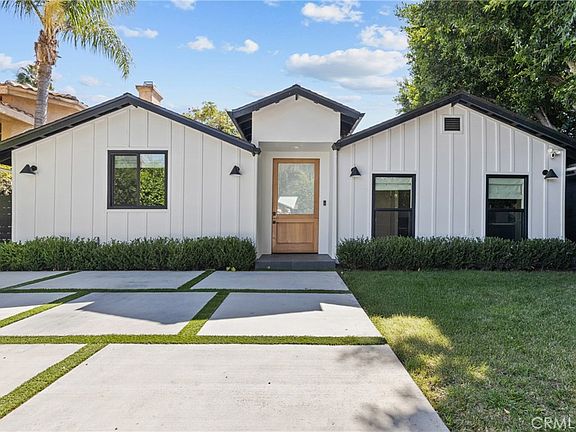 Completely redesigned California modern farmhouse located on a very desirable tree-lined street within the heart of Sherman Oaks. This single-story 5BD/4BA (inclusive of attached ADU) home 2814 sf with no detail spared. The attached ADU has a beautiful kitchen with a full sized fridge, cook top and wine fridge....perfect for any workspace, office, or bedroom. White oak hardwood flooring and clean lines grace the interior as you enter the open-concept floor plan. The chef's kitchen is equipped with top-of-the-line Jenn-Air appliances with an abundance of cabinetry and counter space w/ porcelain center island that opens to the dining and living room. The living room features high ceilings endless skylights and large pocket glass sliding doors opening to the resort-like backyard, epitomizing the California indoor/outdoor lifestyle. The primary suite is its own sanctuary with an extra large walk in closet. The primary spa-like bath has a freestanding soaking tub in the oversized shower. The other four bedrooms are generously sized, and have ample closet space. Ideal for entertaining, the backyard offers a patio, fire pit, pool, spa, built-in barbecue and plenty of grass for friends and family to enjoy. Both the pool and spa are heated. There are Sonos speakers throughout the house and the light switches are smart lights already set and programmed to work with Alexa. Entire house was designed by owner and features fixtures / hardware from Restoration Hardware, Rejuvenation, Zia Tile, Schoolhouse Electric, and more. Home is also equipped with a Tesla charger. Just a short drive to Westfield Fashion Square and all the dining and shopping on Ventura Blvd, as well as easy access to freeways, this home is truly a must-see. We love pets, lets just discuss first!