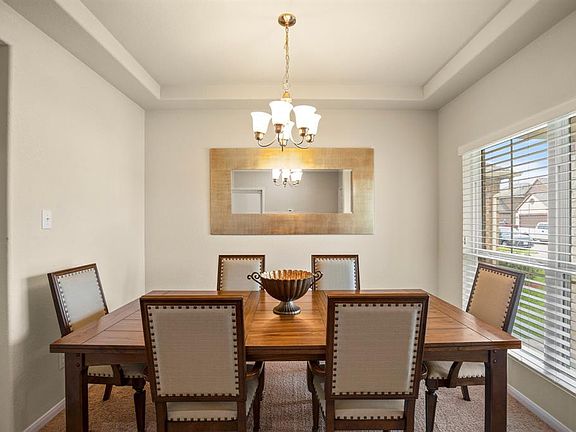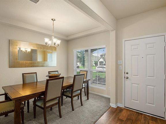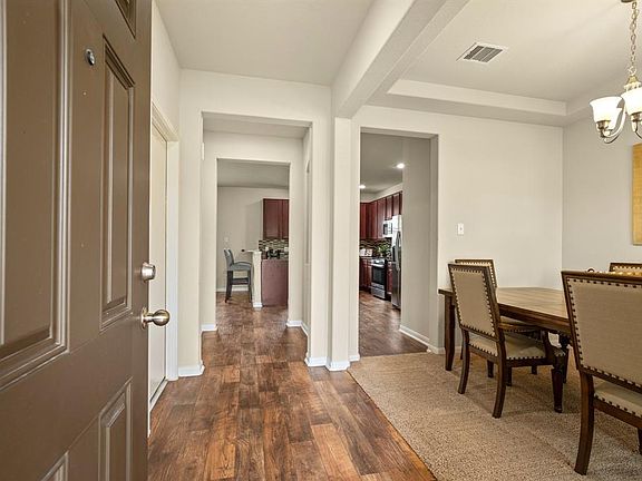 Stunning 4 bedroom home that includes metal spindles, carpet throughout, and hardwood flooring in all wet areas. Intimate eat-in kitchen features cherrywood cabinets over a glass backsplash which will make this kitchen your favorite. Oversized primary bedroom that flows into primary bathroom which includes separate tub and shower as well as dual vanity sinks. Come check out this beauty today! Home includes lawn service as well as external security cameras MUST OBTAIN RENTER'S INSURANCE