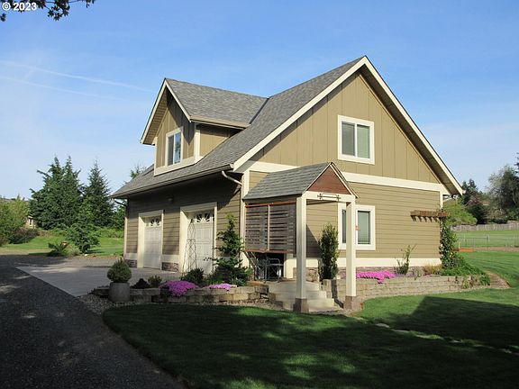 This home fronts and backs to greenspaces-unique. Almost an acre with a shop, detached garage and home. There is ample room for RV storage. Home includes gas fireplace insert, Jennaire appliances, Quartz counter tops, hand scrapped oak hardwood floors, office/bedroom with French doors and frosted glass in closet. The septic system was pumped and evaluated on 8/4/2023! No issues. A new tank was installed in 2014. The primary suite has a oversized soak-tub and a large walk in shower, too. The back patio is like a 2nd family room. The laundry room is large and has several storage options. The mini-split AC unit keeps the home cool on hot days. Seller is a licensed Broker in the State of Oregon. Thanks for looking!