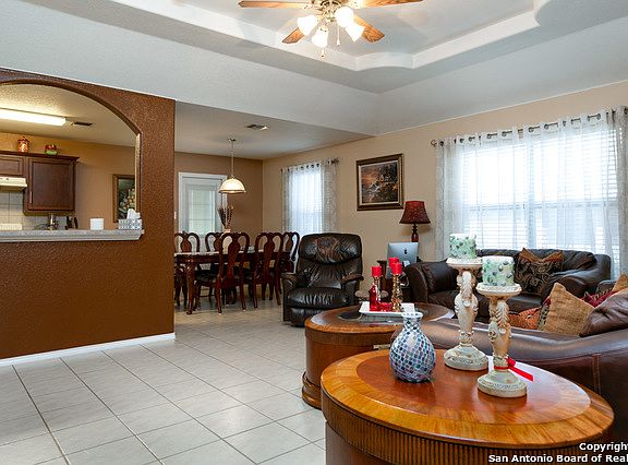 Beautiful one story brick home offers 3 bedrooms, 2 bathrooms and two car garage plus covered carport. Open concept floor plan w/ arched doorways & easy maintenance flooring. Spacious living area w/ tray ceiling. Eat-in kitchen w/ ample cabinet/counter space & decorative tile backsplash. Master suite w/ shower only and double vanity. Backyard w/ oversized patio, gazebo, mature trees & privacy fence. Conveniently located near shopping, restaurants & entertainment w/ easy access to Loop 1604 & I-35.