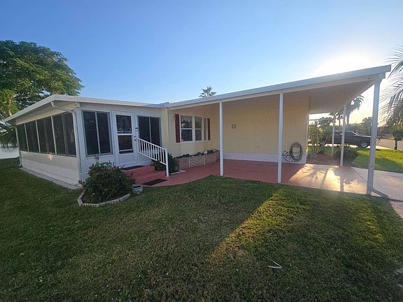 This beautifully maintained home offers stunning lake views from both the front and back, creating a peaceful and scenic setting. Inside, you'll find a spacious open kitchen featuring newer cabinets, granite countertops, and a seamless flow into the formal dining area and family room. The furnished family room provides comfort and style, while the generous living room-also fully furnished-offers plenty of space for relaxing or entertaining. The large main bedroom includes its own private bath with a walk-in shower for added convenience. On the opposite side of the living room, the guest bedroom is paired with a well-appointed bathroom featuring a tub-and-shower combo, making it ideal for hosting visitors. Additional highlights include a newer metal roof, updated A/C system, and quality leather furnishings that enhance both durability and comfort. With its thoughtful layout, tasteful upgrades, and serene lakefront setting, this move-in-ready home is perfect for enjoying the Florida sunshine year-round.