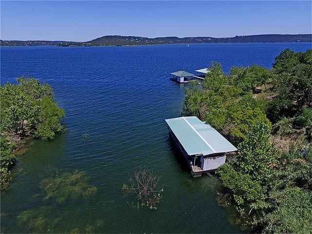 Lake Travis Get-Away Home with plenty of property to add a custom dream home or possibly even subdivide. Existing home faces Hornsby Hill, but land stretches over 400 feet along McCormick Mountain as well. Stunning lake views from decks with winding path to private boat dock with two slips on Lake Travis, across from Windy Point. Lots of privacy & endless possibilities & views for this acreage waterfront on the main body of the lake.