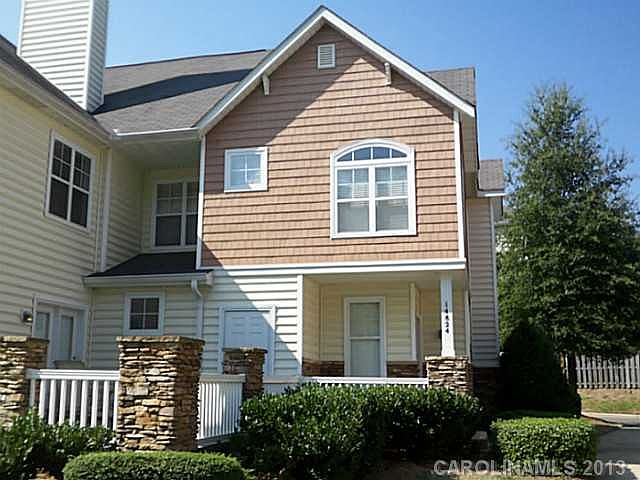 Beautiful End Unit Townhome Near Desirable Ballantyne Area. Nice hardwood floors on main level. Two story Living Room includes gas log fireplace and hallway balcony above. Great light and bright, open floorplan. All bedrooms nice size including walk in closet in master! Newer washer & dryer included. Newer carpet upstairs. Large outdoor patio area with rear garage entry. In this area, it will go quick! Call today for your tour!!