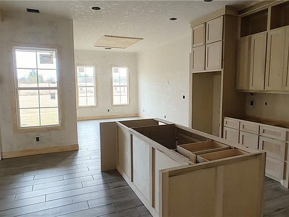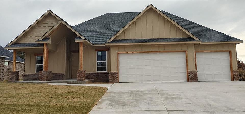 This beautiful brand new home is nearing completion in the Choctaw-Nicoma Park School District. It sits on a quarter of an acre and is located just minutes from Tinker. This open concept floor plan boasts a family sized dining room as well as a large eat in bar/island in the kitchen with quartz countertops. Soft close hinges on the cabinets and drawers are an added perk. Wood look tile throughout main areas of home with carpet in bedrooms. Primary bedroom and bathroom offer a luxurious retreat, with jetted tub and walk in shower. Large covered front porch and back patio for outside entertainment space. Stained cedar beams and trim are gorgeous accents on the exterior of this home. It will also have stained wood beams on the living room ceiling for a cozy, inviting feel. Currently, tile is installed and cabinets/ trim are being installed. Walnut Lane is a quiet street with no through traffic. House is on schedule to be move in ready by late December.