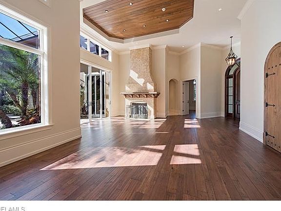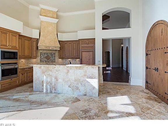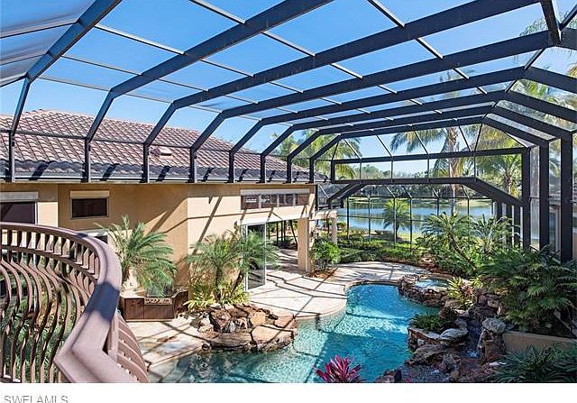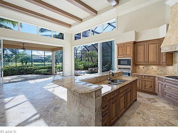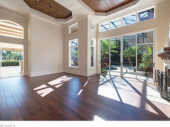 This was one of the first home sites selected by the developer in Bellezza because of its premium Southern rear exposure and oversized lot size, which accommodates the rare second 2 car garage (4 car garage total) and 4th & 5th bedrooms. The incredible resort style pool with multiple rock waterfalls overlooking the lake along with your own personal putting green will make you feel like you're on vacation every day! The interior was recently repainted, new wood floors in living area, and 2 new AC units in the main house. Features include Anderson impact glass windows, whole house automated lighting controls, fireplace, stone floors/countertops, and premium Sub-Zero and Wolf appliances are only a few of upgrades in this beautiful home. Maintenance free living with pool, lawn and landscaping included in the HOA fees. The exclusive Mediterra golf and beach club offers multiple levels of membership. Buyer to assume CDD.