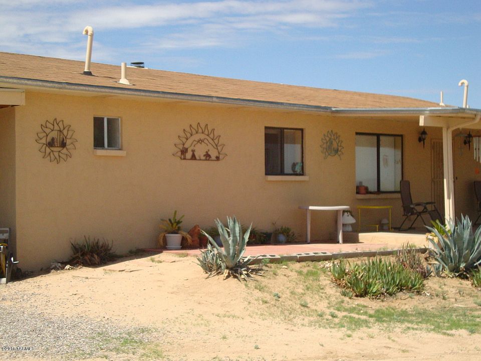 Located on Paved Streets! Completely fenced, Custom Built Home. Great room floor plan, open, light and airy. Lots of ceramic tile, saguaro rib kitchen cabinets, large laundry room. Lovely front patio. You can see Kit Peak and Picacho Peak. Beautiful sunsets, nice vegetation. Owner says that there are one or two septic tanks with elect. on property for mobile home hook-up. Condition as-is. Flat and very useable 4.22 Acres. Potential Short Sale.Qualifies for USDA financing.