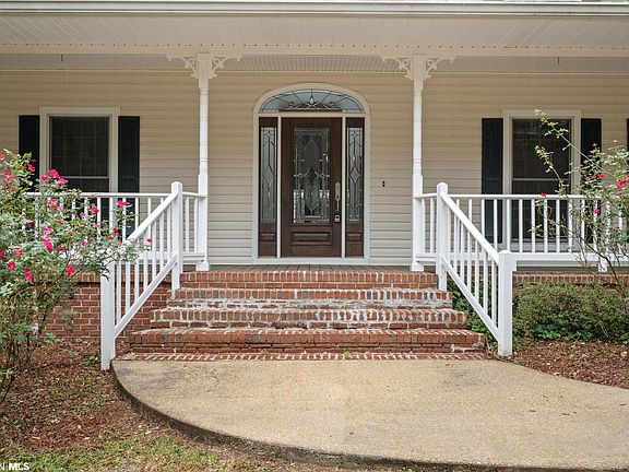 STUNNING!!! A must see home! Situated on approximately 4.2 acres, this beautiful 4 bedroom/3.5 bath home has it all! Walk through the gorgeous bell stained glass custom front door ("Old Mobilian") into a beautifully tiled foyer. The great room boasts high ceilings, fireplace, and french doors, leading out on a relaxing screened in sun porch. The kitchen features granite countertops, Thermador refrigerator, a double oven, island gas cooktop, tons of solid oak cabinetry, recessed lighting, smooth ceilings and a sunny breakfast area with a bay window. The master bedroom is situated on the main floor and also features hardwood floors. The master bath boast a garden tub with separate shower, dual vanities, bay window, huge walk in closet and recessed lighting. Upstairs, you will find 3 additional bedrooms (one with built in bookshelves) and beautiful crown molding throughout. Other features include a triple car garage, 3 year old roof, 2 year old HVAC (with dehumidifier), spacious storage building with shelving, separate water heaters for each level, Pella windows throughout and built in Generac generator. Peace and tranquility abound! Easy to show!