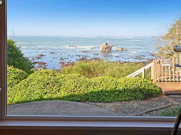Your own stairs to the beach from this beautifully landscaped oceanfront home. Enjoy the spectacular view from a private patio. Remodeled spacious kitchen opens to expansive great room with fireplace and large picture windows facing the sea. Great for entertaining and family gathering. Large master with en suite bath, walk-in closet, and vaulted ceiling. It has a separate living area and bonus room. Minutes from the Winchuck River.