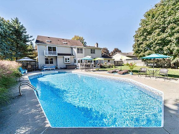 Looking to live the life of luxury? Located just a few steps from the Juday Creek Golf Course, you can wrap up 18 holes of golf and park your cart at home in your own 3rd garage stall before taking a dip in your private, heated pool! Recently updated kitchen with center island, trendy and warm grey cabinetry, stainless steel gas range/microwave/refrigerator. Open concept between the kitchen and family room with views to your backyard paradise. Formal dining room and living room with new carpet to escape to or use for overflow guests when entertaining. Bonus room off the family room is a great space for a small office with a view! Venture upstairs to find 4 incredibly spacious bedrooms, not to mention the loft space perfect for a playroom or study area. Finished basement with pool table. 2 car garage PLUS 3rd separate stall (13x13) for your golf cart or extra toys! New pool liner this year/pool heater 5 years old. Hot tub is negotiable. Washer, Dryer and Robotic Pool Cleaner are excluded. Offers will be reviewed on Sunday-time tbd