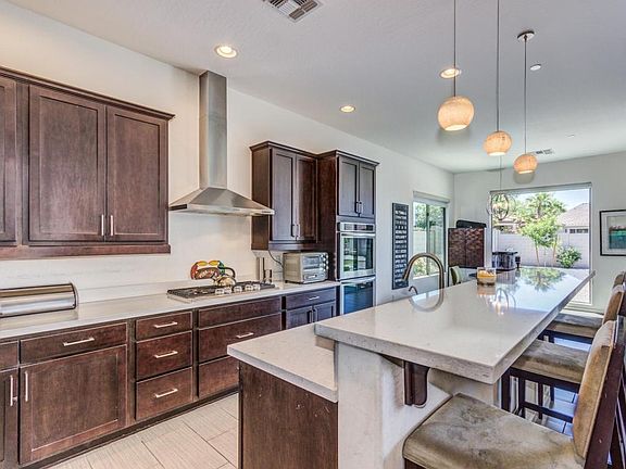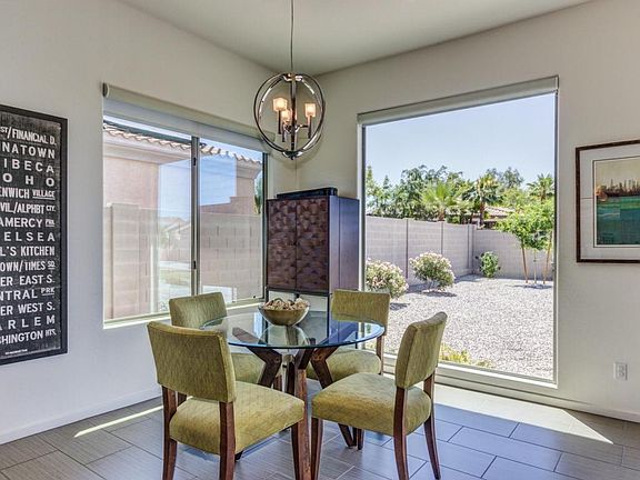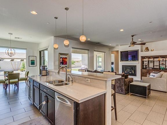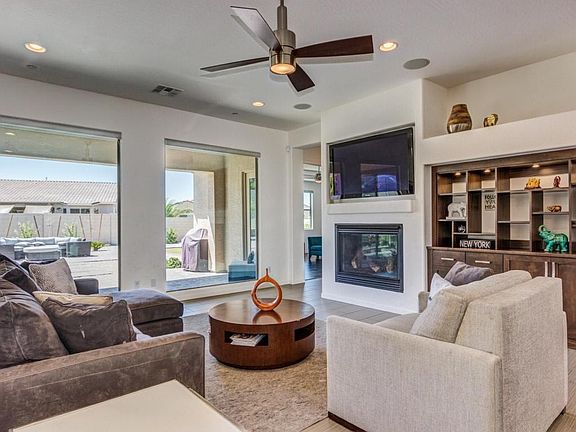 Very open floor plan with lots of windows for natural light! Formal living area, separate den/office, large great room with built-in shelves & relaxing gas fireplace all open to a spacious kitchen with large breakfast bar & breakfast area. All stainless steel KitchenAid appliances included, plus the TV in great room!! Beautiful luxury waterproof vinyl flooring, real wood shutters & central vac. Master bedroom has coffered ceiling, 2 walk in closets, separate shower & tub. Wait till you see the location of the washer/dryer. Large lot is fully landscaped & features pavers, luxury pet friendly synthetic grass and easy maintenance plants. Backyard has a large pool & spa, and a beautiful casita. Perfect for the in-laws or out of town guests. Lot has north/south exposure. Built by Toll Brothers! Lots of extras!