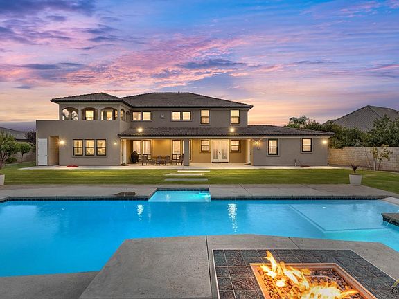 Unique custom built Mediterranean home in one of Bakersfield's most prestigious neighborhoods, Talladega. Upon entering this grand home with vaulted ceilings, you will be amazed by the detailed finishes and extensive upscale amenities throughout. Amenities include a double island quartz kitchen with designer cabinets, custom backsplash, top notch appliances, vegetable sink, and oversized walk in pantry. This home has a separate entrance from its personal garage or from backyard to an inlaw suite/guest house with bathroom and living room downstairs. Three bedrooms, including the main suite with balcony, are upstairs and three downstairs with one being used as an office and another one being used as a game room. The park-like grounds are amazing overlooking a pool with deck jets, firepit, walk in entry, and upgraded lighting. This home is located on a cul de sac and has 7 car garage with wrought iron gate RV parking. Solar is owned!