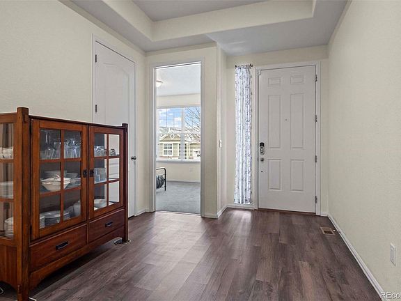Beautiful home with over 2200 above ground square feet in the highly desirable Heritage Todd Creek! This popular Ascott floorplan by Lennar features 9ft ceilings, updated Cortec flooring throughout the main level, and a large great room with a gourmet kitchen, dining and family room with cozy fireplace and custom French Doors to extended covered deck. A chef’s dream, this kitchen boasts Wolf gas range oven, double ovens and dishwasher! The kitchen also features granite countertops with subway tile backsplash, 42in cabinets with crown molding, breakfast bar and walk-in pantry. You will love the primary suite with Coffered ceilings, bay window, and a private bathroom with ceramic tile shower and bench, granite countertops with dual sink vanity, and a large walk-in closet! This home also boasts two additional bedrooms on the main level, full bathroom, and a study with French Doors. The basement offers an additional 2281 square feet that is partially finished with a fourth bedroom and stunning full bathroom, leaving plenty of space that can still be conformed to your liking. Step outside to the extended covered patio and landscaped backyard with partial turf, sod, river rocks, and stamped concrete trim and pathway. The Heritage Todd Creek golf community offers residents a 33,000 square foot clubhouse with endless amenities including pools, tennis courts, fitness center, and a restaurant! Don’t miss out on this one, schedule your private showing today!