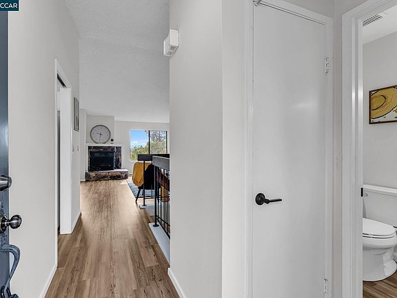 Breathtaking Views & Serene Living in Vine Hill! Escape to this tranquil townhouse nestled in a secluded corner of the desirable Vine Hill community, where panoramic views of majestic Mount Diablo greet you upon entry. Freshly painted interiors and new laminate flooring upstairs create a bright and inviting atmosphere. The kitchen boasts stylish new butcher block countertops. Enjoy soaring vaulted ceilings and the convenience of a powder room on the main level. Downstairs, find two comfortable bedrooms, each with direct access to the private ground-floor patio and the primary suite featuring its own en-suite bathroom. Entertain effortlessly on the generously sized front deck, complete with a convenient slider to the kitchen. Enjoy the ease of two assigned covered parking spaces directly in front, plus a handy storage closet with a workbench near the entrance. The Vine Hill lifestyle offers fantastic amenities including tennis courts, a community pool, and a clubhouse. Ideally located in the heart of Martinez, you're just moments away from schools, downtown shops, restaurants, cafes, BART, and major freeways.
