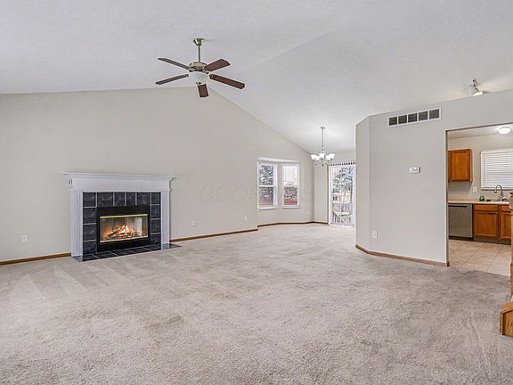Welcome to this move-in ready, highly functional 3/2.5 layout home in River Valley Highlands! The spacious living room greets you upon entry and features soaring vaulted ceilingvs and a granite surround mantle fireplace. The kitchen offers plenty of storage space and stainless steel appliances. All bedrooms are generously sized, including the primary with an ensuite bath. Thius home also includes an unfinished basement that adds valuable storage and flexibility for future use. Enjoy the outdoors on your patio overlooking the fully fenced backyard with expansive green space. The property offers a solid combination of condition, space, and practicality.