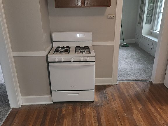 Lovely and spacious 2 bedroom, 1 bath, UP unit. Large covered porch. Full living room with decorative fireplace, dining room with built in shelving, detached garage space. Kitchen has new gas stove and a fridge provided. Basement is shared common area. Resident pays gas/electric. Owner pays water/sewer. Resident to handle snow removal. New windows on order and to be installed in July. First month rent and secuirty deposit of $1200 due immediatly upon signing a 12 month lease. All occupants over the age of 18 must fill out application. $200 refundable pet deposit required.