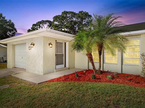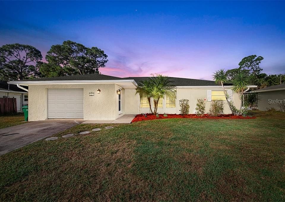 One or more photo(s) has been virtually staged. Offering the epitome of a casual and laid-back way of life in true Floridian style, this single-family residence provides an incredible value and excellent opportunity for a starter home, down-sizing family or income-producing property in a non-deed-restricted community. This move-in ready home with concrete-block construction sits on an over-sized lot and offers a combined open-concept layout and split bedroom design w/ 2 master suites and ensuite baths. Boasting a highly desirable floor plan complete w/ modern integrations, this property will appeal to most buyers of today while offering a clean slate to add your own custom touches. Upon entry into a welcoming foyer, you are greeted by a generously proportioned interior leading to an expansive great room with custom, ceramic tile in an attractive brick pattern that flows effortlessly from a combined kitchen and dining space. A galley-style kitchen with breakfast bar, granite tops & newer, sleek appliance package in matching finishes is efficiently laid out for prepping meals complete with a designated bar for serving cocktails or merely as additional counter space. Within this refined interior are 2 master suites w/ ensuite baths ideally positioned on opposite sides of the home for undisturbed privacy. Upgraded fixtures such as designer lighting, sleek faucets and hardware including imported tile are some of the recent inclusions featured throughout this well-appointed home. An expansive outdoor lanai with screen enclosure spanning the entire width of the property w/ access from both master suites and dining area is sure to impress, creating an amazing space for entertaining guests or hosting extended family. This wonderful patio can easily convert to a Florida room, perfect for our year-round climate in the Sunshine State. Don't forget the one-car garage with room for a small, dedicated workshop complete w/ washer & dryer hookups including an extensive driveway fit to hold several vehicles, even a motor home or RV. Enjoy proximity to Murdock Circle, nearby beaches and all the conveniences of Port Charlotte with easy access to I-75 and US-41 for daily commuting. This is a fantastic opportunity for a very well-priced home. Video walk-thru and FaceTime tours are welcome and accommodated. Please inquire for more information and schedule a private showing today!