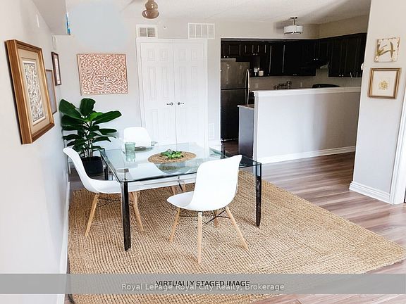 Welcome to this beautifully maintained one-bedroom Oxford model condo located in the vibrant Dempsey neighbourhood of Milton. Offering over 650 sq ft of functional living space, this home is ideal for first-time buyers, commuters, or investors. The kitchen features dark, elegant cabinetry and generous storage perfect for cooking and entertaining. The bright open-concept layout flows into a spacious living area with a walkout to a private balcony. The primary bedroom includes a large closet and ample natural light. A full 4-piecebathroom and in-suite laundry add comfort and convenience. This well-managed building offers excellent amenities including a gym, party room/club house and visitor parking. A commuters dream with quick access to Hwy 401, Hwy 407, and Milton GO Station. Walk to grocery stores, restaurants, movie theatres, and the Milton Leisure Centre. Surrounded by parks, walking trails, and family-friendly amenities. Don't miss this opportunity to live in one of Miltons most connected and desirable communities!