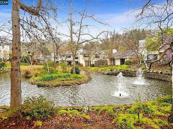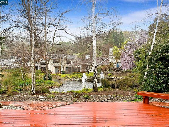 $100,000 price reduction on this rare single story in desirable Quail Ridge development. Two large bedrooms plus a den or office off living area with potential for 3rd bedroom. This neighborhood is a hidden jewel located close to hiking trails, parks, shopping, restaurants, and easy access to both 24 and 680 freeways. Situated on a prime lot overlooking pond and fountains. You'll love entertaining family and friends from this picturesque setting. Open floor plan with high ceilings and great room concept with potential for more cosmetic updating to make your new home a show place. Improvements since 2017 include custom front door with side light, Milgard windows installed through out, plantation shutters, extensive siding replaced, and solar panels installed. Huge eat in kitchen with recessed lighting, granite counters, lots of cabinets and hardwood flooring. Crown mouldings, skylights, and millwork in den. The house opens to outdoor living with expansive deck, pond and fountain setting, brick walkways, and room for garden area.