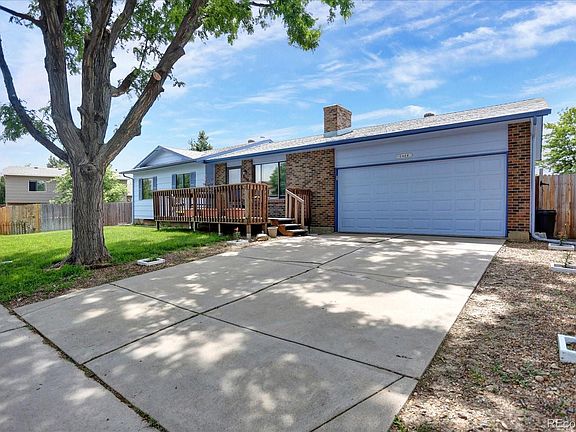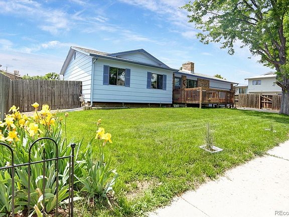 Fantastic ranch with big back yard and covered deck in great neighborhood. 3 bedrooms on the main floor and a large bedroom with a 3/4 bath in the basement. Basement has a family room area you can easily finish with a brick fireplace hearth & wood stove. Large oversized attached garage. Main floor bath has been remodeled. Window swamp cooler and stainless steel refrigerator included!