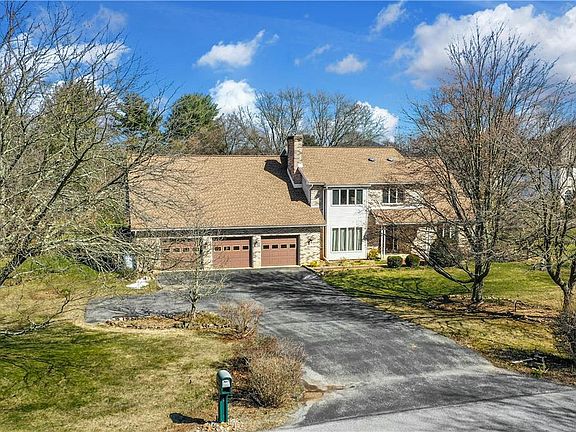 Located on the first floor, the primary suite offers a walk-in closet, bath with soaking tub, sliding doors to a private deck, and access to a year-round sunroom. Upstairs, three large bedrooms share a hall bath. A cozy library includes two walls of shelves and large windows. Office space and unfinished storage rooms offer lots of possibilities. Outside, the large backyard has been landscaped with perennials, fruit trees and garden beds for year-round enjoyment. A small pond and gazebo add to the appeal of Saucon Meadow Gardens, ideally situated close to major hospitals, the Saucon Valley Country Club, and Lehigh Valley commuter routes.