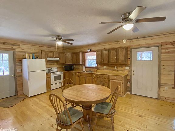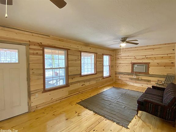 NEW Cabin on 3 acres joining Piney Creek!! This 1 bedroom/ 1 bath cabin features an open floor plan with large windows in the living area, large utility room that could be made into a second bedroom, and a full bathroom with a walk in shower. Outside the home is a large porch, two storage buildings, and a carport covering with a workshop in the back. This property has underground power and an RV hookup. Piney creek is a year round creek great for fishing, kayaking, and canoeing.
