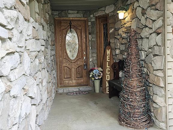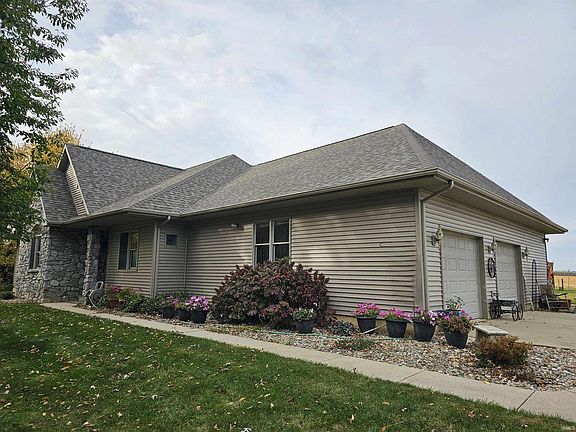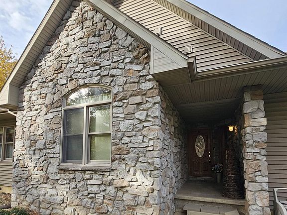 This stunning 3bedroom, 2 bath custom home boasts a beautiful stone entryway and sits on 1.96 acres of picturesque land complete with a view of Myers lake. You'll love the spacious den and the luxurious master suite featuring a huge bathroom & walk-in closet, plus a private 3 season room for year-round enjoyment. The kitchen is a chef's dream, with solid surface counters, ceramic flooring, and tall ceilings, complimented by its own 3 season room off of the dining area. The breathtaking great room features a striking stone fireplace, vaulted wood ceilings, hardwood floors, and built-in bookcases perfect for relaxation & entertaining. Every room showcases unique custom cut glass windows & elegant crown molding. Conveniently located laundry is on the main level, and there is an oversized heated 2 car garage, and a massive full basement offers endless possibilities for customization. Additionally, a 48x30x16 pole bld built in 2020 includes 50 & 30amp RV plugs both inside & outside & 2 large overhead doors. The property also has an irrigation system for easy maintenance of your beautiful surroundings.