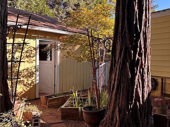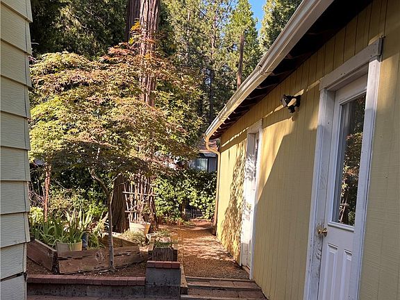 This delightful manufactured home is located on a large corner lot in a peaceful neighborhood shaded by pine trees. With front and back decks, you will be sure to find the perfect spot to relax and enjoy the scenery! Detached 2 car garage with extended back shop added to the garage including full workshop benches and a wood stove for comfort in the cold winter days. The large lot allows for plenty of parking options. The home has a full RV space set up with cement drive up leveled spacing and hookups. A large graveled drive way and a carport along the side for additional parking. The corner lot has been fully landscaped with walk ways, an array of plants for a serene forest setting to relax to while sitting on your front porch. Step into the living room and enjoy the vaulted ceilings, with a newer wood stove offering cozy radiant heat in the winter months. Primary bedroom features a large walk in closet with plenty of storage! Primary bathroom has two sinks with individual cabinets for more storage and a step in shower. Second bedroom is spacious and also includes an accessible step in shower with entrance from the utility room/ laundry room that offers a large built in wash board sink. The large kitchen has two windows overlooking the peaceful landscaping of the front yard and features plenty of counter space, a breakfast bar open to the family room area, not to forget the kitchen nook that is off to the side. The dining area has a built in hutch that allows for a lovely display of your family heirlooms. This was a family home for 40 years and was maintained and loved. All the home needs is someone to add their personal touches allowing a place to come home to for tranquility and peace.