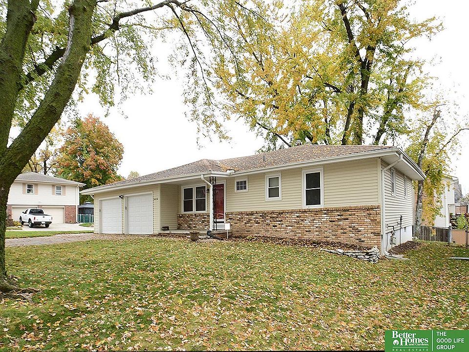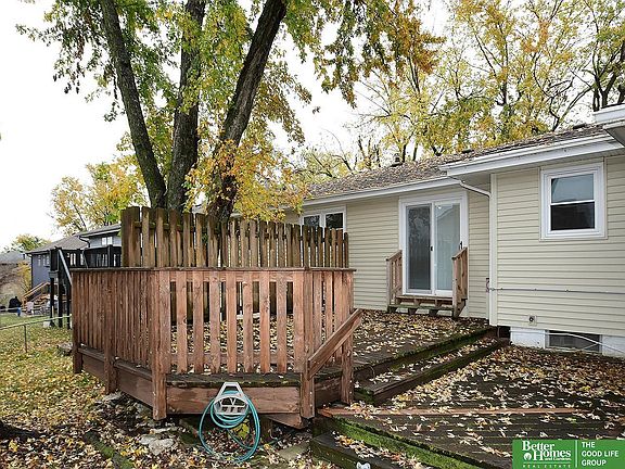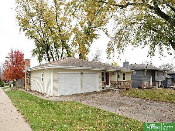 Discover this 3 Bedroom/3 Bath ranch style home on a corner lot in a centrally located Millard neighborhood. Main floor living and dining rooms plus a cozy hearthroom/family room with a fireplace and access to the Sun Room. Roomy kitchen over looking the family room has plenty of counter space and a pantry with pull out shelves. Primary bedroom has two walk-in closets, one with an original laundry chute and a 3/4 bath. Updated hall bath with additional linen storage. New interior paint on the main floor. All new carpet throughout. New HVAC 2016, all new vinyl windows and vinyl siding 2019, Three season Sun Room with a ceramic tile floor and plenty of light. Added in 2001. the 16' x 11.8' room has 189 square ft of space not included in main floor square footage. Spacious rooms to spread out downstairs plus a huge storage room. Great outdoor space with a 22' x 16' deck in the private fenced backyard. A neighborhood park plus Walnut Grove park and walking trails close by. Come see!!
