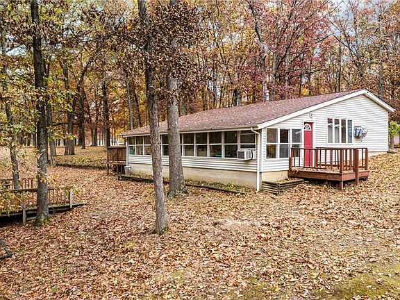 Quaint lake cabin with deep water! This fully furnished home has been nicely updated and ready to be enjoyed. Terrific sunroom offers lake views. 100 ft. of steel sea wall. Dock frame, lift & decking is brand new and ready for you to finish to your specifications. Open floor plan with vaulted ceilings. New roof in 2015 and utilities buried in 2020. Water depth is estimated at 10ft at the dock! If you're looking for a lake getaway at an affordable price - this is it!