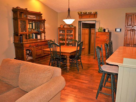 - Features: Sump Pump, Window Treatment, Dryer h/u - Elec, Pantry, Washer HU, Sunroom, Blinds, Garage Opener, Smoke Detectors, Circle Drive, Pole Barn, Storage Shed, Walk-In Closet, Utility Room, Kitchen Island, Living/Dining Combo