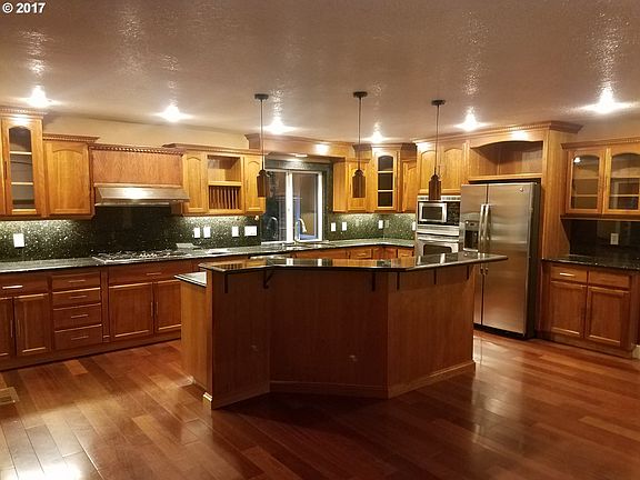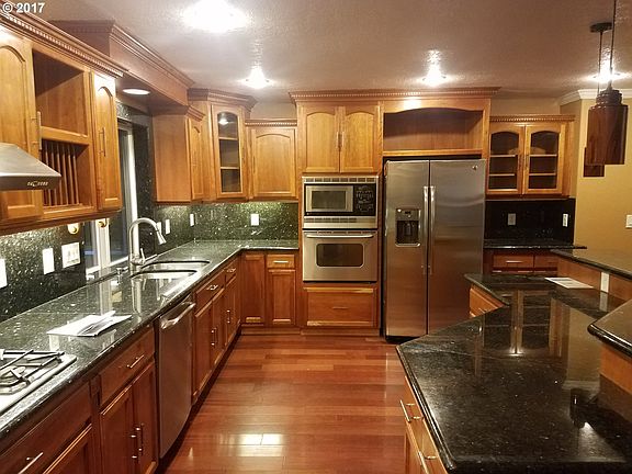 One of a kind contemporary in sought-after Bull Mountain location. Live large in this beautiful home featuring Brazilian hardwood flooring throughout most of the home, central AC, high ceilings, unbelievable indoor water feature, slab granite kitchen, stainless appliances, 3-car garage w/level driveway, HUGE terraced back yard w/oversized patio area, plantation shutters, 2 master suites w/1 on main level, many built-ins & den on main.