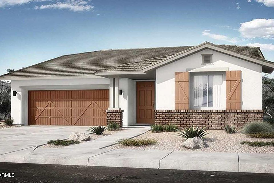 MLS#6574382 July Completion! The 40-RM1 at Los Cielos at Rancho Mercado. The spacious open great room plan features four bedrooms and two bathrooms. The owner's suite is tucked away in the back of the home for privacy, while the secondary bedrooms are at the front of the home. At the heart of the home, you will find a spacious kitchen, dining, and gathering room. Nestled in beautiful Surprise, just minutes from shopping, dining and all the fun things! Design options include: 36 inch upper cabinets in kitchen, recycle center, pendant light pre-wires, quartz bathroom and kitchen countertops and entertainment package. Structural options include: garage service door, alt AC location with gate, pavers at front porch, driveway and walkway, 8' interior doors, gas line for future outdoor kitchen, and soft water loop.