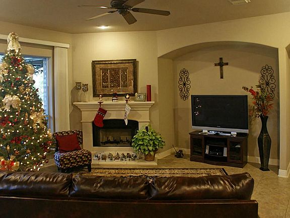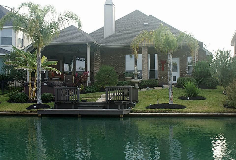 Exceptionally clean & well appointed 1-story on the water. Enjoy a great waterside retreat on your patio & dock located at the intersection of two sections of lake. Grand covered patio & spa will ensure you spend a great deal of time with your view. Granite & stainless built-in appliances complete the gourmet kitchen, open to the great room & awesome views through the numerous windows along the back of the home. Freshly painted. Tile throughout w/carpeted bedrooms.