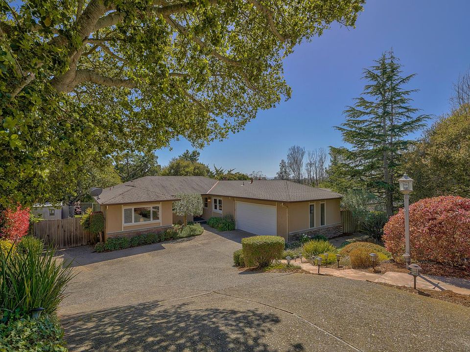 Welcome to this charming ranch style beauty.Located on a cul de sac with open space across the way and behind the home.A gorgeous front door greets you.Lots of light and windows through out. You will immediately be drawn to the private park like backyard with multiple entertaining areas.Off the entry is a lovely kitchen, with views over the horizon allowing the Western light to shine through. Kitchen opens to the dining area & cozy family room. Patio right off the family rm w/ views to the West.Spacious formal living room adorned by a stunning custom fireplace with marble inset & 2 windows on either side.Stroll out to the gorgeous backyard where you can entertain family and friends. Master suite allows access to the backyard and ensuite bath. Three additional bedrooms with an updated bathroom.Check out the built ins in the closets.Apples, oranges, cherry, lime & apricots trees. Immaculate condition.Parking on side of house.Sq.ft./lot size/age/schools not verified by listing agent.