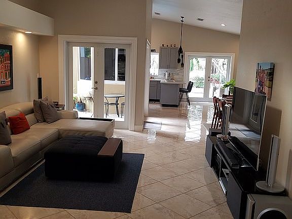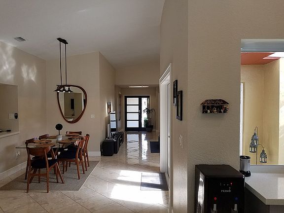 Beautiful single family lakefront pool home located in Hammocks Chantarelle development with park and walking trail path. Complete with impact windows and doors throughout the entire house and wall to wall tile. Vaulted ceilings, sky lights, natural lighting compliment a spacious open floor plan inside. Stunning views in the backyard facing the lake and beachfront from a large covered lanai overlooking your pool and landscaping. Remodeled kitchen, redesigned master bath, and a salt chlorinating system.
