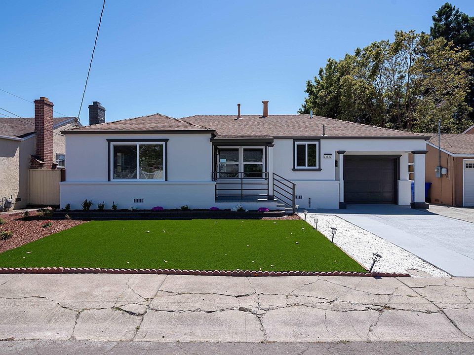 This Picture Perfect Home Is Filled With Natural Light. Located In A Highly Desirable Neighborhood, Home Features Open Concept Layout With Fireplace That Is Great For Entertainment. Stylish Kitchen Includes Two-Tone Scandinavian Oak & Blanco Cabinets, Quartz White Carrara Countertops & Backsplash, High-End SS Appliances. Bathrooms Are Finished With Wall To Ceiling Black & White Tiles With Custom Vanity. Throughout the Home, Discover Modern Touches Such As Waterproof Vinyl Floors, LED Lights, Smooth Texture & Paint, DP Windows. Exterior Has Acrylic Stucco With Window Foams. Primary Bedroom Is Spacious & Open's To A Rear Deck. The Backyard Has An Open Patio Which Is Perfect For Hosting Events !! A Drought Resistance Backyard Has Been Landscaped With Garden Ready Planter Box. Finished Garage Is Currently Staged As Bedroom & Office. Enjoy A Convenient Location Close To BART, Shopping, Restaurants, Freeway & Minute’s From Downtown San Leandro. This Home Is Move In Ready..