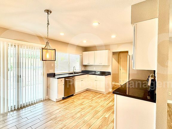 Covered patioInviting kitchenFenced backyardPrivate primary suiteCarpet and tile flooring