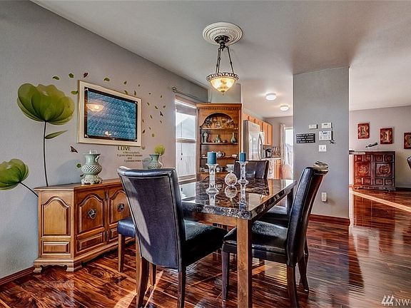 Heart of Yelm! $21K solar installed w/PSE dollar return! Gleaming laminate flrs thruout main level. Great flow between dining, kitchen, & living rm. Kitchen boasts ample cabinetry & white applcs. Dining rm w/custom lighting. Laundry rm w/pantry shelves. Lrg upstairs landing w/endless options! Mstr bdrm w/bath & walk in closet. Fully fenced bkyd w/patio. Low maintenance vinyl siding. Neighborhood playground & walk to nature reserve w/picnic pagoda. Quick commute to JBLM & close to all amenities.